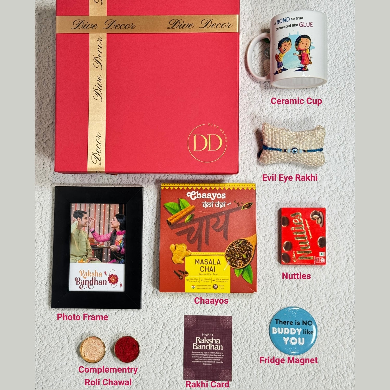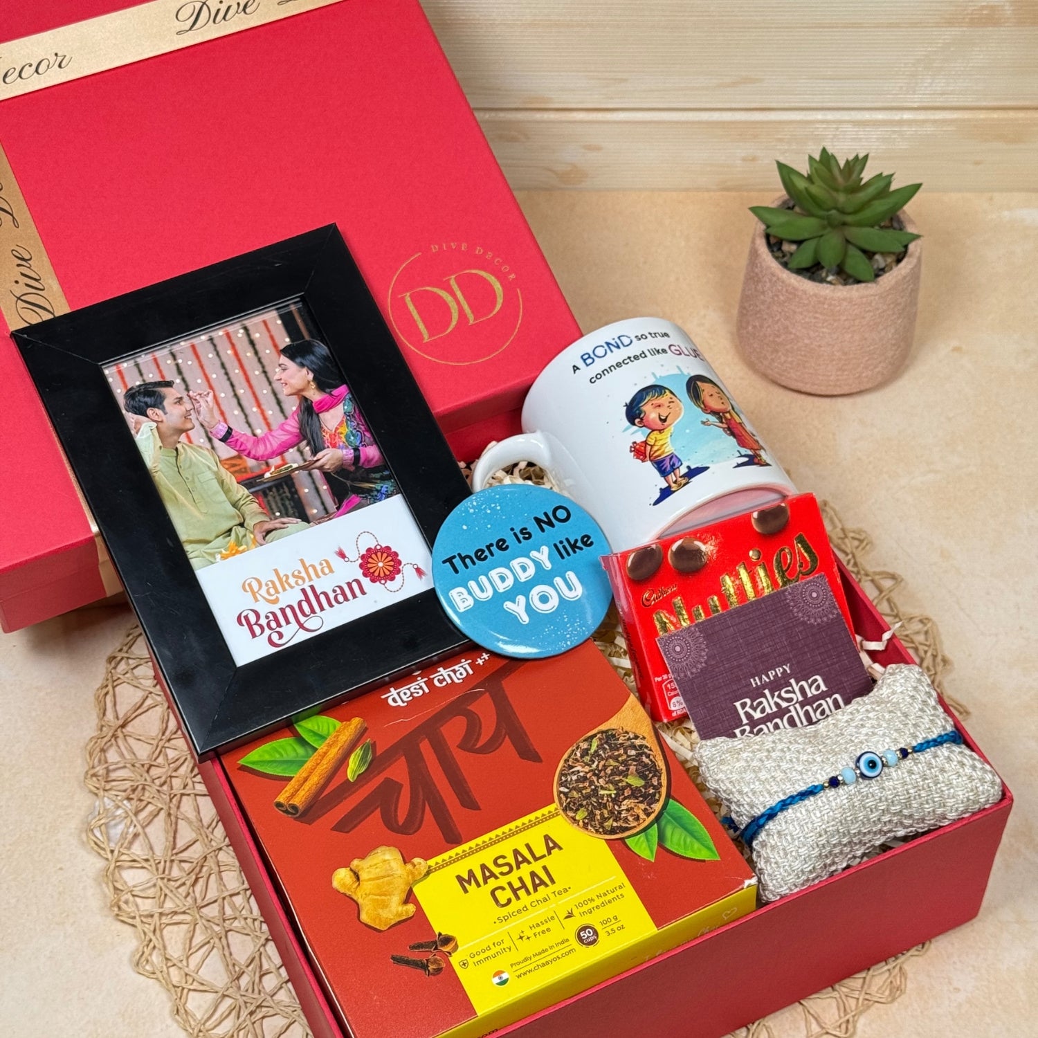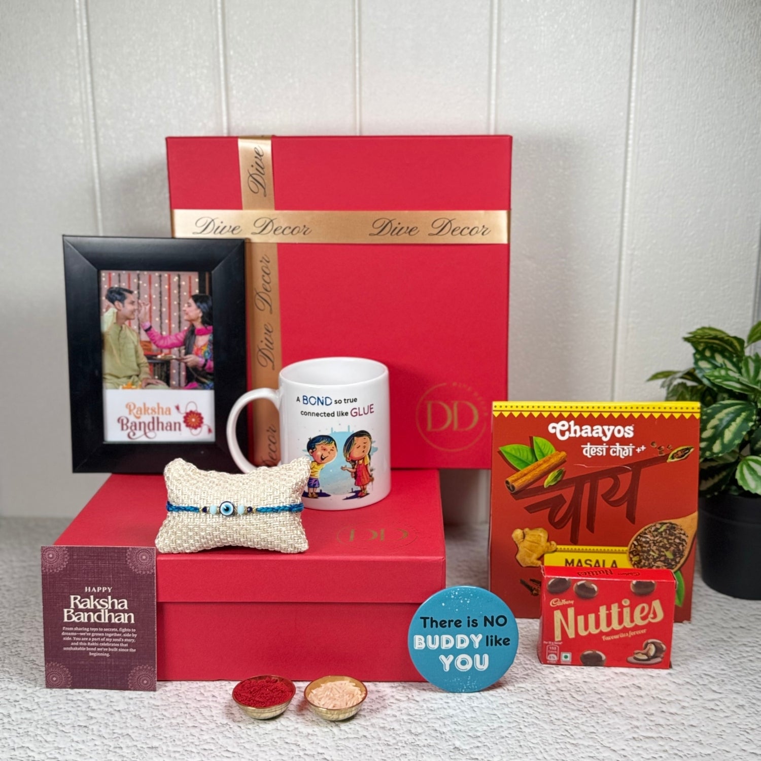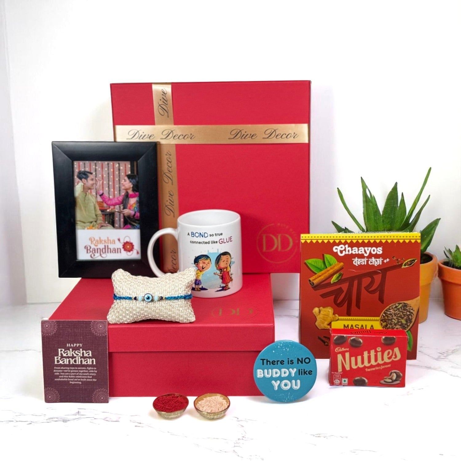 Celebrate the timeless bond of love with Dive Decor's Raksha Bandhan Gift Hamper – a thoughtfully curated blend of tradition and emotion. Each hamper is beautifully packed with festive essentials and heartfelt keepsakes, making it the perfect gift to cherish your sibling connection.